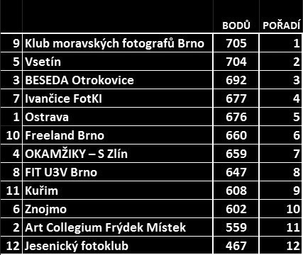 POŘADÍ KLUBŮ DLE POČTU BODŮ